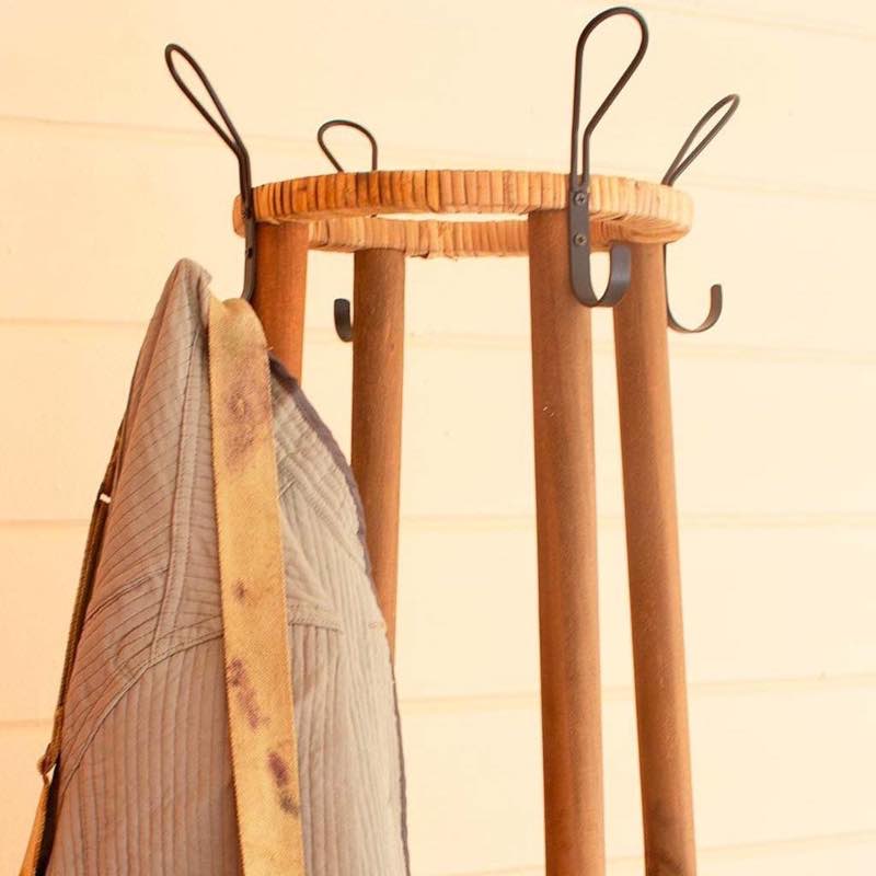 Organize your entryway with boho-cool vibes when you display this Rattan Coat Rack with Umbrella Basket. Features a spiral-wrapped basket for umbrellas yoga mats and more. A standing design features four tall hooks for coats bags and scarves. This versatile hall tree fits perfectly in small entryways where space is always needed.