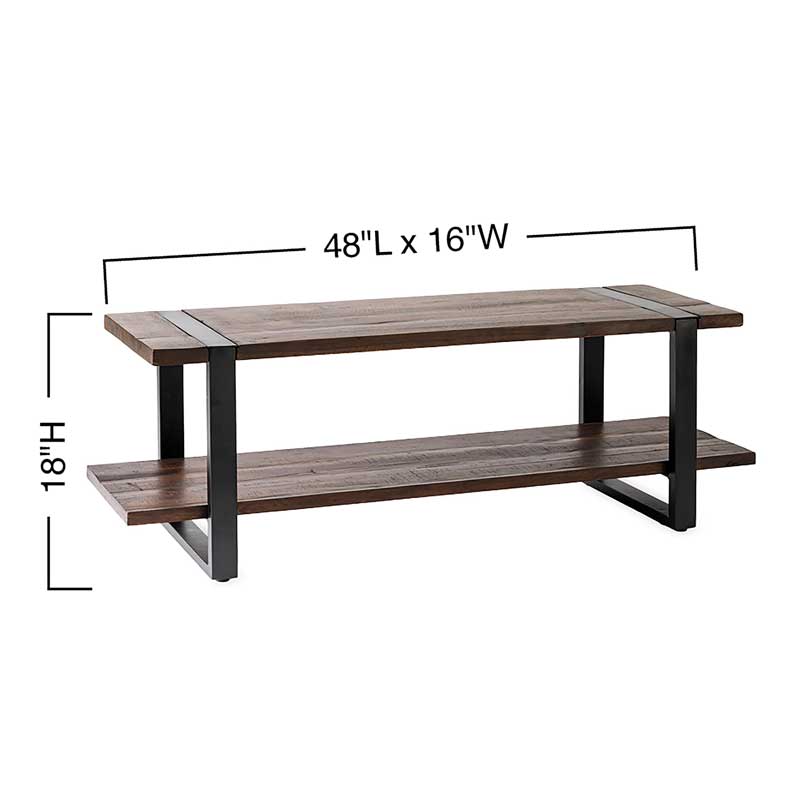 This open storage bench includes a low metal shelf that’s perfect for storing shoes, bags, or baskets. Each bench is unique due to its reclaimed and handmade nature, with naturally distressed marks. This dense, durable wood is proven to stand the test of time and is a testament to nature's wonder. A perfect spot at the entryway to store all in and out-going traffic necessities.