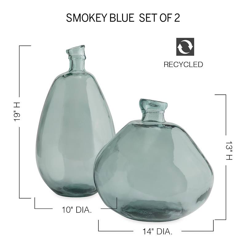 Recycled Tall Glass Balloon Vases 13" and 19" (smoky blue set of 2)
