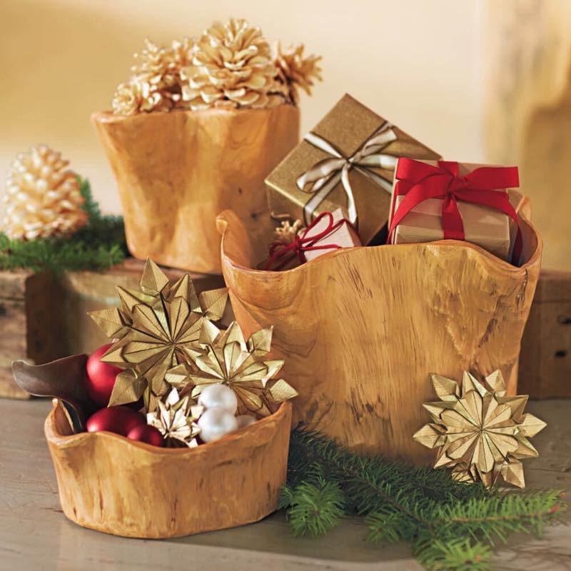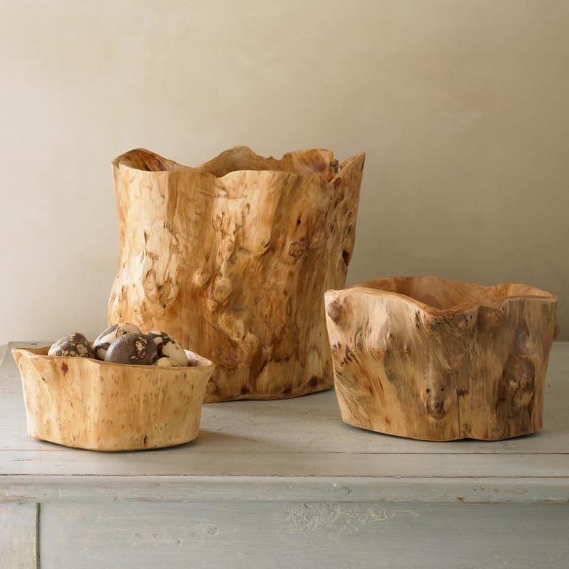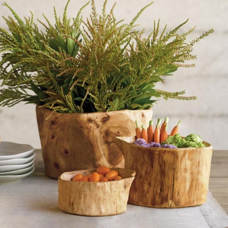 There's no end to the uses you'll find for these rustic versatile wooden bowls. Hand-carved by artisans, each is crafted with care from the discarded root balls of Chinese fir trees, which makes each one truly one-of-a-kind with unique cracks, variations, and undulations. They're absolutely stunning in any space as part of your accent decor. Perfect as a gift basket alternative during the holidays or year-round, they make great reusable gift containers too.