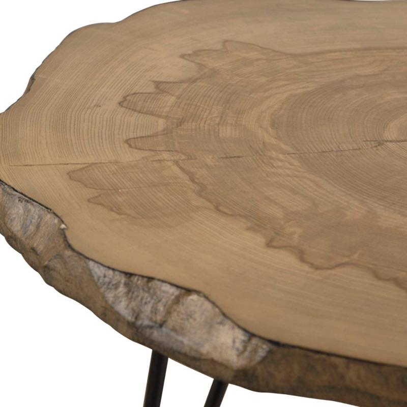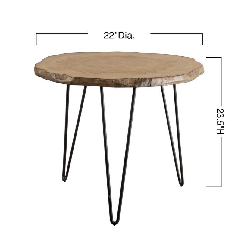 Featuring mid-century-inspired hairpin legs in black cast iron and an ash-wood veneer top with a carved edge this accent table adds minimalist appeal to any room. The natural tabletop has unique knots and cracks ensuring you get a one-of-a-kind accent for your home. A rustic yet modern take on luxurious style this table instantly elevates your space.