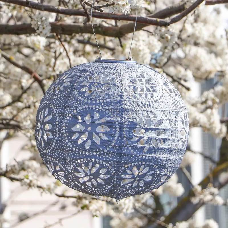 Vintage and lacy the Soji Stella Boho Globe Solar Lantern is a recent addition to our popular solar lantern collection. This beautiful 12-inch lantern has an intricate floral punch sure to bring a touch of opulence to any backyard getaway.