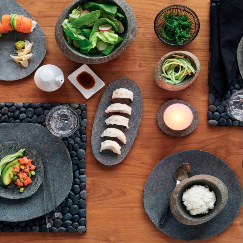 These Stoneshard Plates are as authentic as you can get when it comes to stoneware. Crafted from real river stones these plates are carefully cut sanded and polished smooth on both sides giving you an earthy addition to your eclectic table. Theyre sure to make a textural complement to dinner plates and an appealing serving piece on a buffet. Display them as serving boards or trivets for varied use.