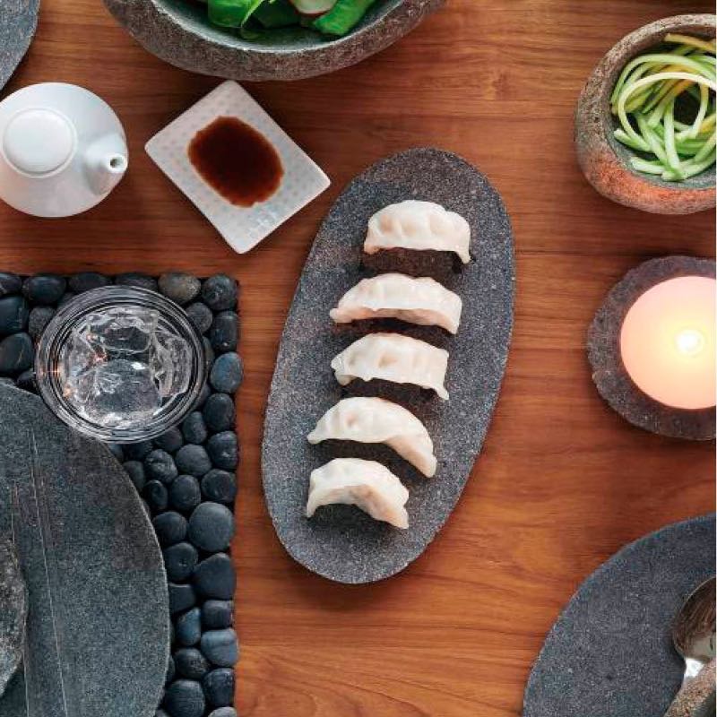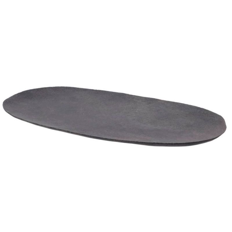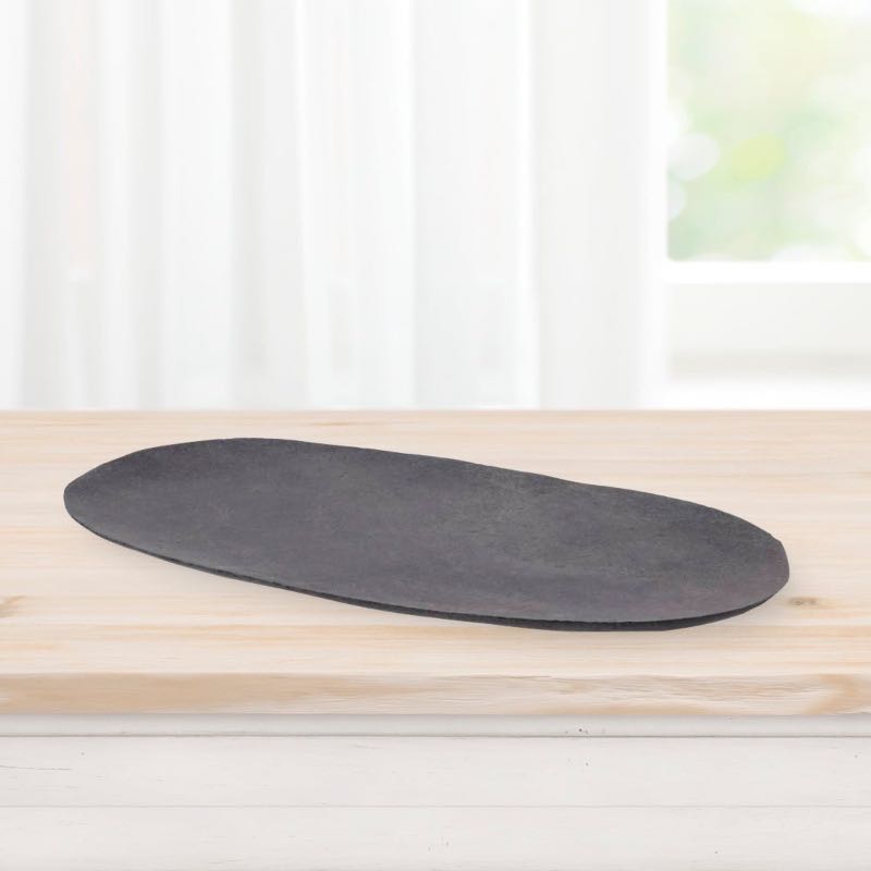 This Stoneshard Platter is as authentic as you can get when it comes to stoneware. Crafted from real river stones this platter is carefully cut sanded and polished smooth on both sides giving you an earthy addition to your eclectic table. Theyre sure to make a textural complement to dinner plates and an appealing serving piece on a buffet. Display them as serving boards or trivets for varied use.