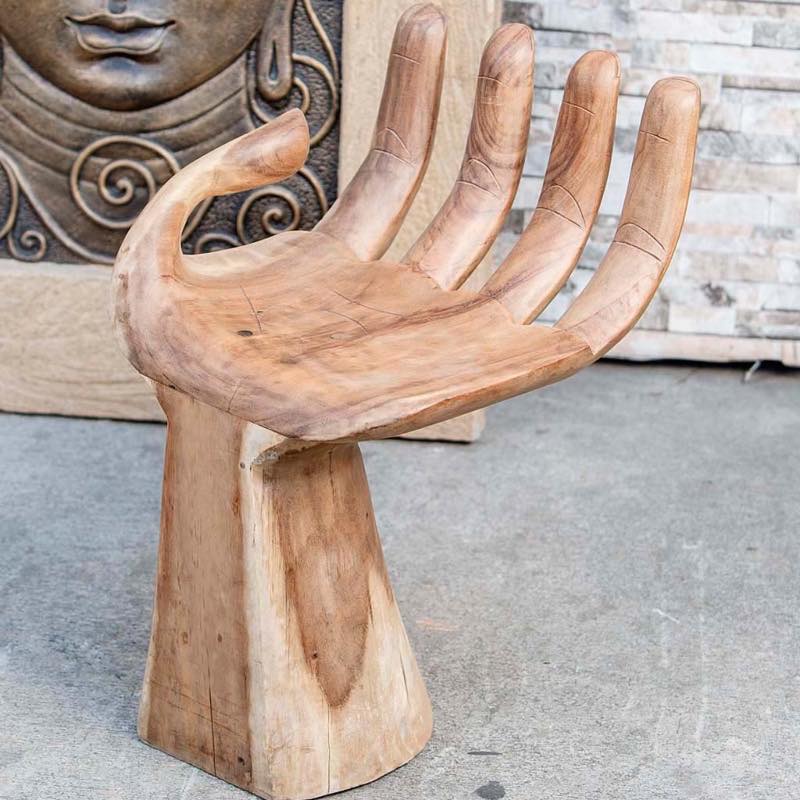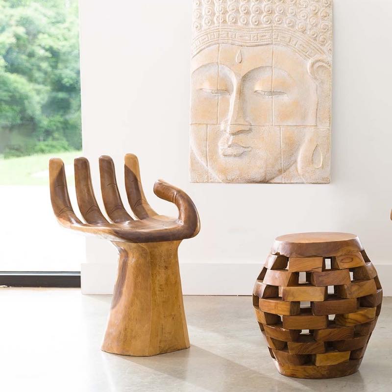 Bring both a meditative element and a unique functional sculpture into your home with the artisan crafted Suar wood Carved Hand Accent Piece. Promising to be a conversation piece this accent provides a calm resting spot for mindful accessories plants and books as the shape is a representation of the hand of Buddha. Use it as a side table alongside a sofa or chair.