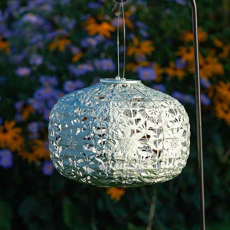 This beautiful 11-inch lantern has an intricate sunflower punch-out design sure to bring a touch of opulence to any backyard getaway.