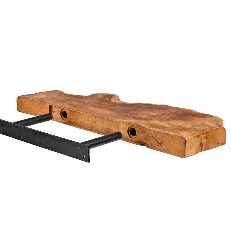 The natural curve and character of this live-edge wood shelf offers a piece of functional artwork for your home. Reclaimed from the enormous roots of felled teak trees the wood is carefully crafted by skilled artisans to capture its stunning organic quality each a one-of-kind beauty. Perfect for your bedroom living area or home office.