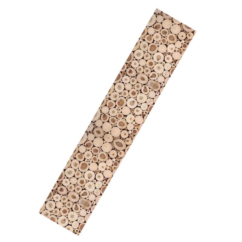 Sourced responsibly the teak wood slices are individually hand-selected to ensure their rich grain patterns and natural hues shine through. Arranged in an organic pattern and bound with a felt backing this table runner showcases the inherent charm of teaks rustic imperfections.