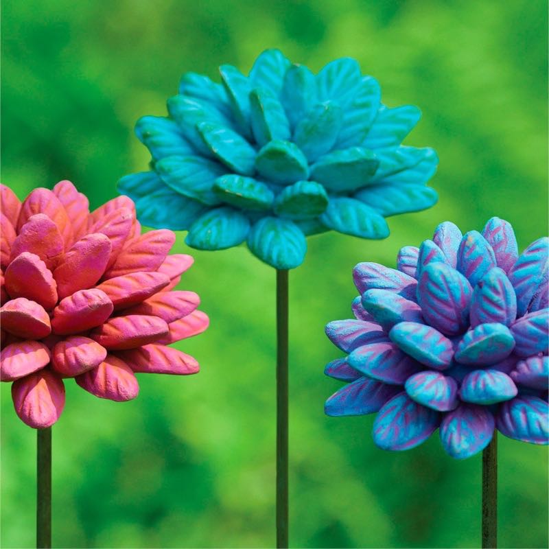 Liven up your garden with this set of 3 Terracotta Flower Stakes. Each flower is carefully hand-shaped from terracotta, creating a gorgeous full bloom ready to plant in your garden. A perfect solution when you need a pretty pop of color in an off-season climate. Use in flower beds or as a cheery addition to a plant container. The sturdy metal stakes ensure secure installation in the garden.