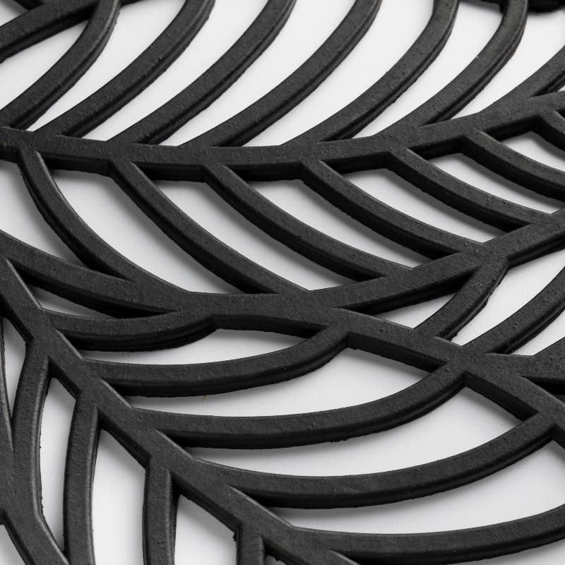 When it's raining or snowing, a rugged outdoor rubber mat can make getting in the door a little easier and a lot less messy. Our Tropical Leaf Rubber Doormat is molded of ultra-durable black rubber in an intricate leaf motif that captures the look of cast iron. The high-low texture allows water to drain through, while the nice weight helps keep it securely in place. VivaTerra Exclusive.