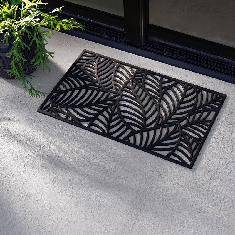 When it's raining or snowing, a rugged outdoor rubber mat can make getting in the door a little easier and a lot less messy. Our Tropical Leaf Rubber Doormat is molded of ultra-durable black rubber in an intricate leaf motif...read more