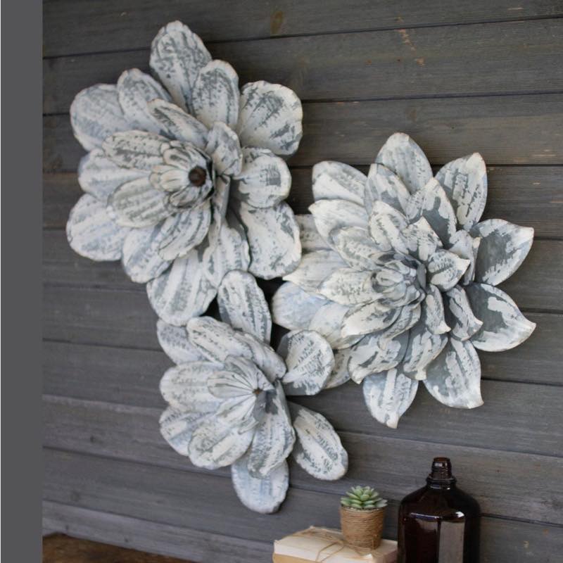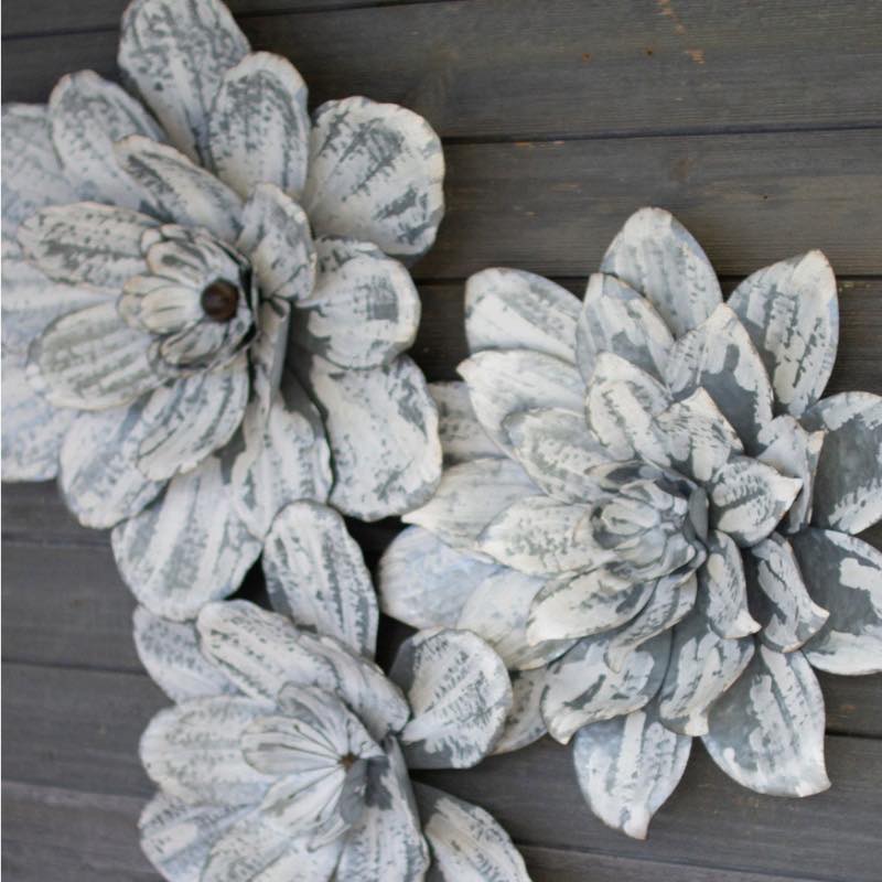 Make a stunning focal point in your home with these large whitewashed hanging wall flowers! The blooms in our galvanized wall flowers are crafted from sturdy galvanized iron to resist environmental effects like rusting. Each is unique in design and size and arrives ready to hang with an incorporated keyhole at the back. Lightweight enough to easily handle.
