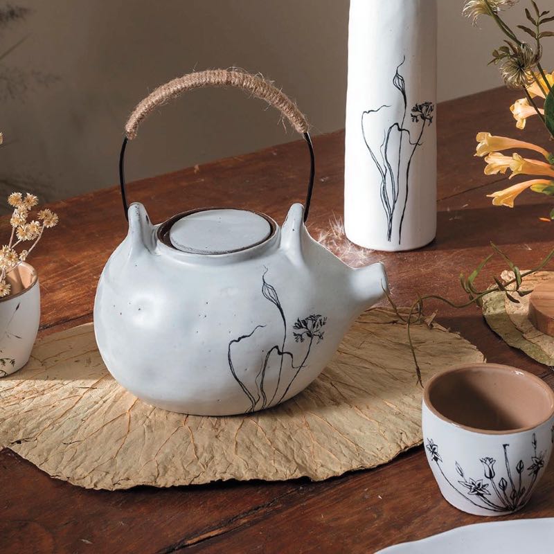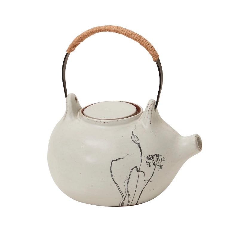 Step into modern elegance with the delicate Wisteria Teapot, exclusively designed by Jessica Hiemstra. Each piece is a contemporary masterpiece, twice-fired and finished with a chic matte white speckled glaze, perfectly capturing the essence of wildflower beauty in a fresh modern style.